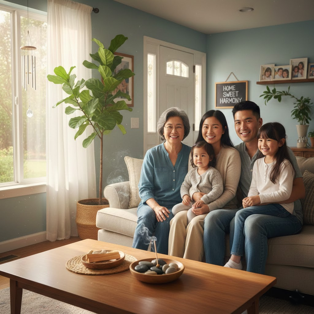 某家庭搬入新居後,成員經常失眠、情緒煩躁。經淨化及簡單風水調整後, 氣氛明顯和諧,睡眠亦逐步改善。